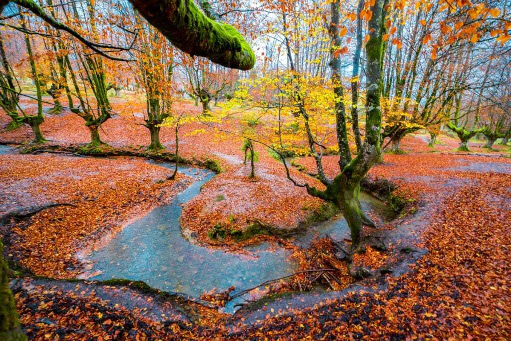 Bilbao 빌바오와 Vitoria-Gasteiz 비또리아-가스떼이쓰 중간쯤에 우리는 El Parque Natural de Gorbeia 고르베이아 자연공원에 위치한 작지만 마법 같은 너도밤나무 숲을 발견했습니다. 가을에는 숲 바닥이 나뭇잎으로 뒤덮여 꿈같은 분위기를 자아내고, 뒤틀린 너도밤나무와 El Río Zadorra 싸도르라 강이 어우러져 매력을 더해줍니다. 헛되지 않은 이곳은 País Vasco 바스크 지방 전체에서 가장 많이 사진을 찍고 방문하는 장소 중 하나입니다.